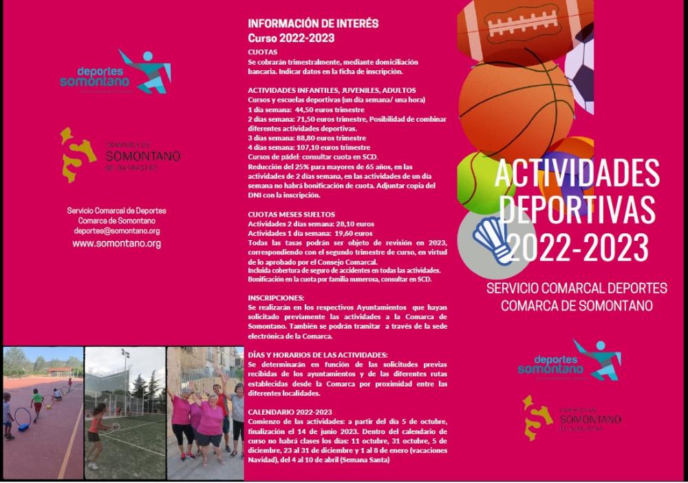 El Servicio Comarcal de Deportes de Comarca de Somontano de Barbastro ofrece Actividades Deportivas 22/23