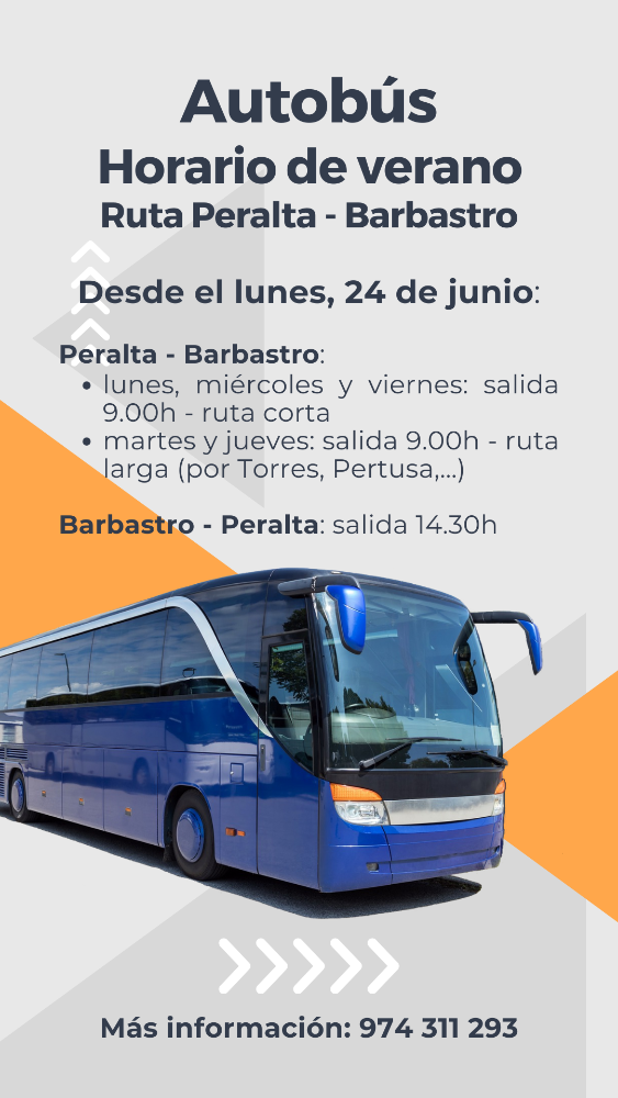 Desde el lunes, 24 de junio, cambia el horario de autobuses Peralta/Barbastro.