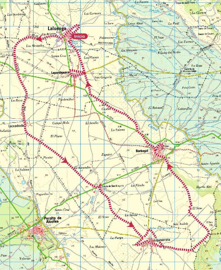 Km: 36 km. Duración. 3h. Desnivel 425m. Dificultad: Fácil.